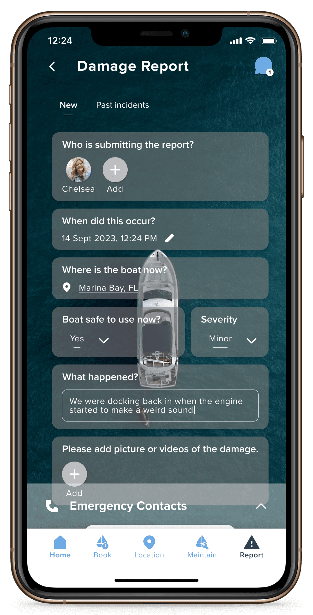 Boat damage is a question of safety. Users now have a streamlined way of reporting incidents as they occur. The form asks for all necessary information that a professional might later need when fixing the issue, including vital safety information such as the severity of the damage and whether the boat is still safe to use.
