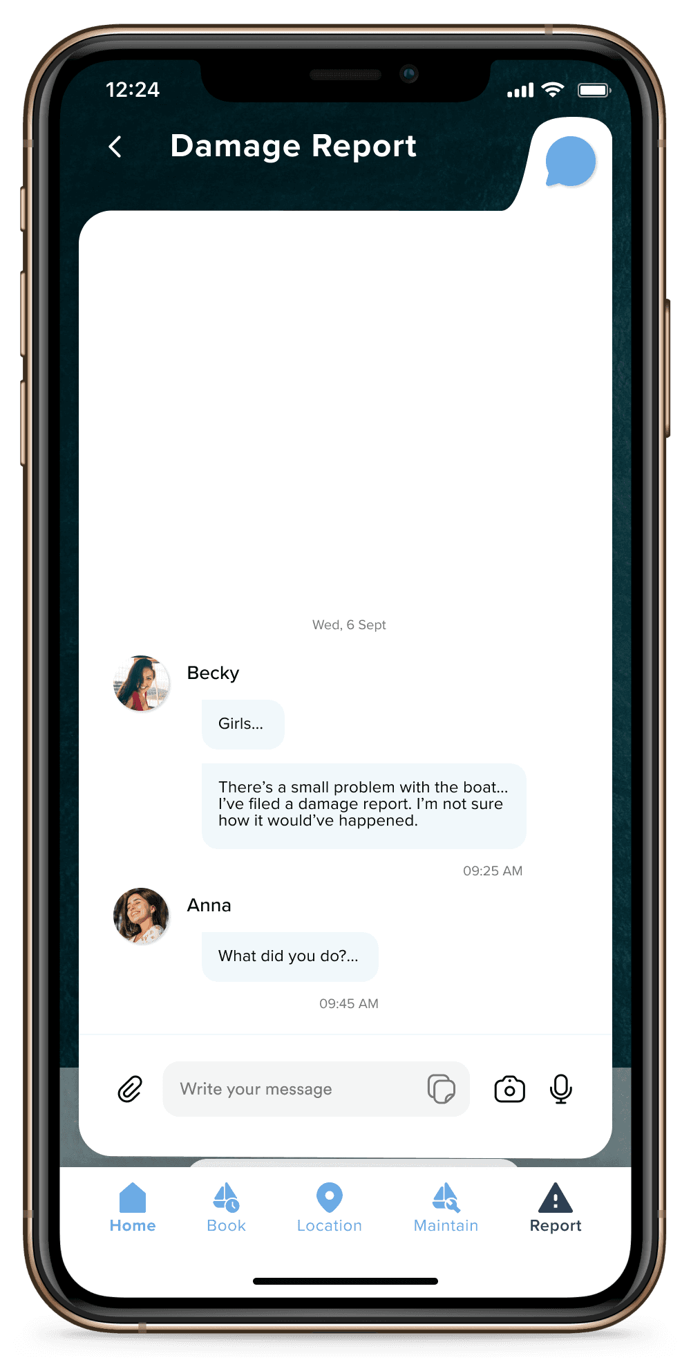 The in-app chat feature ensures that boating matters can be discussed separately from every day conversations.