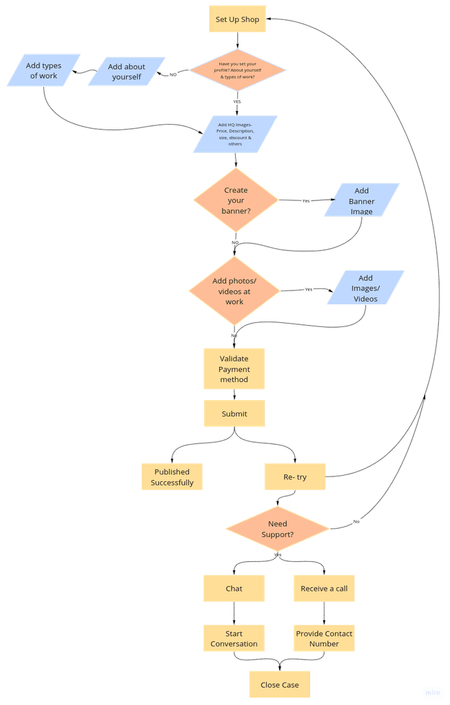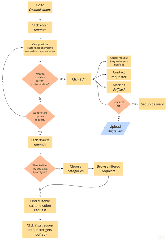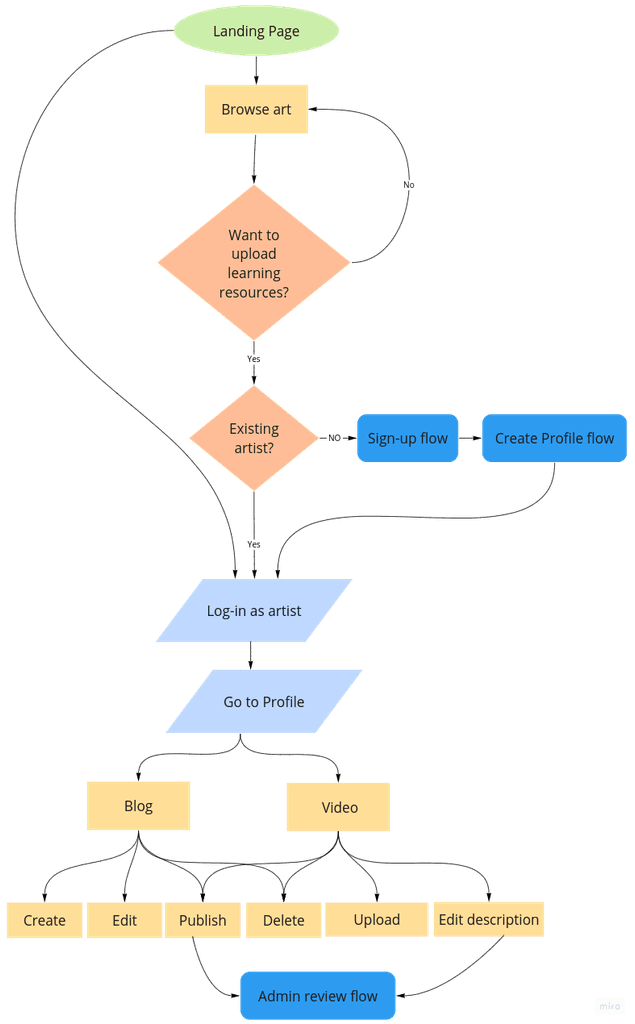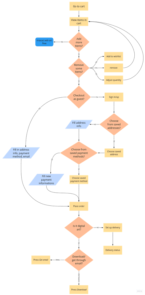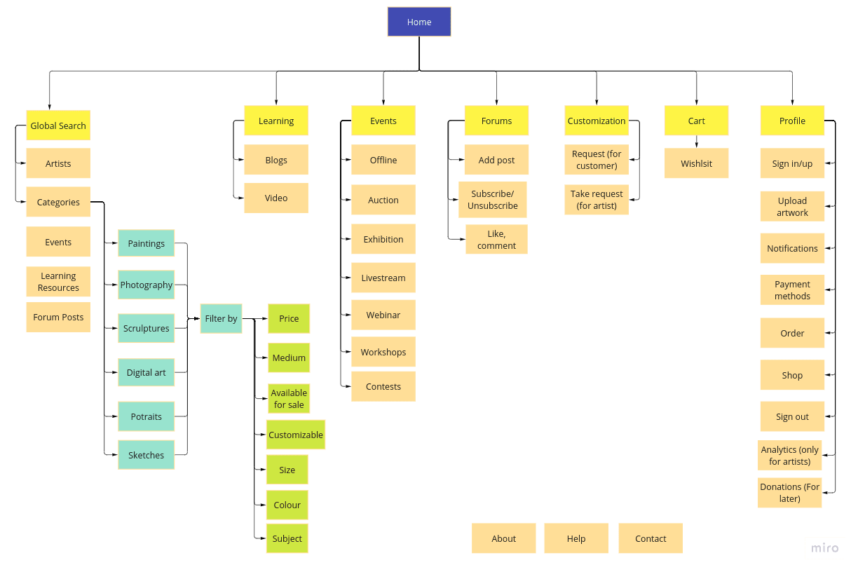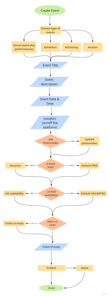 I created 31 user flows to showcase how a user might interact with the platform: onboarding, buying/selling art, searching art, interacting with events, creating/hosting an event, managing profile, etc.